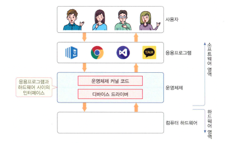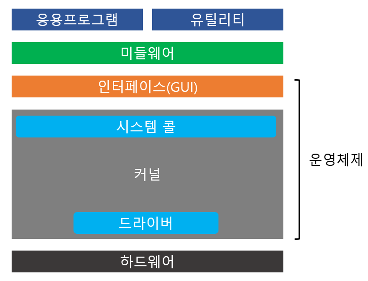 하드웨어 자원을 관리하고, 응용 프로그램와 하드웨어 사이를 중재하는 인터페이스