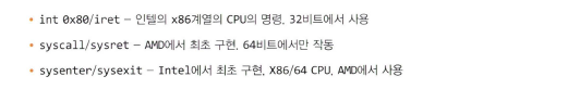 - CPU의 기계 명령 (시스템 호출 명령)