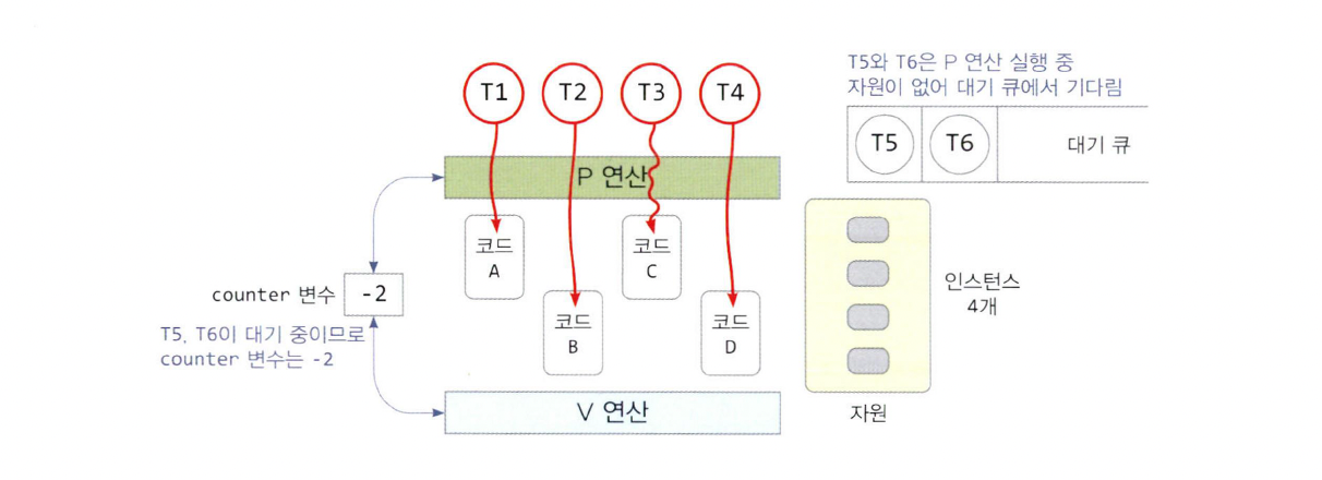 - 자원에 4개의 인스턴스가 있을 때 counter 변수는 4로 초기화된다
