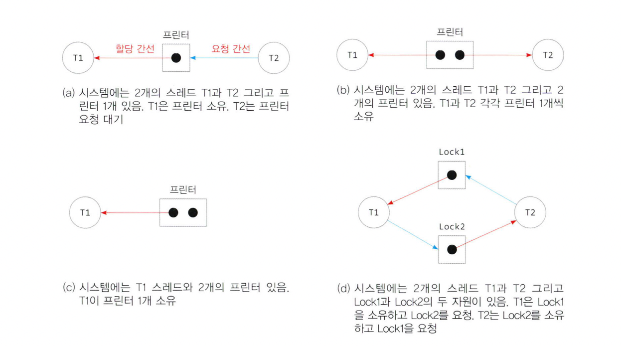 - 자원과 스레드들의 상태를 나타내는 방향성 그래프이다