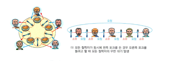 왼쪽 포크를 든 상태로 기다려야 한다 - 다른 철학자가 들고 있는 포크를