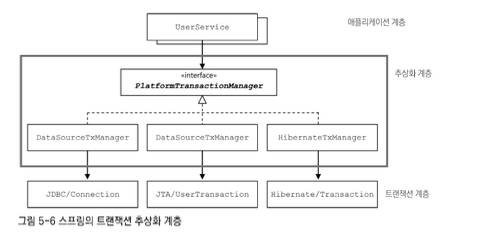 - PlatformTransactionManager : 스프링이 제공하는 트랜잭션 경계설정을 위한 추상 인터페이스