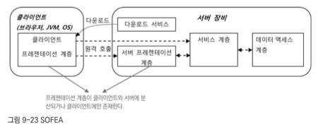 - 프레젠테이션 로직이 점점 클라이언트 측으로 이동하면서, RIA(Rich Internet Application)나 SOFEA(Service Oriented Front End Architecture)와 같은 기술들이 사용